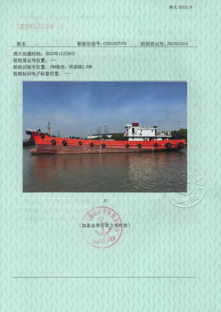 售:2012年近海1000噸雙殼油船浙江造船級(jí)ZC尺寸:53.5*9.2*4.15主機(jī):濰柴6200*216kw帶加溫交通部運(yùn)力電聯(lián)15064482720王